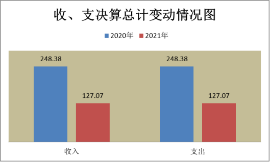 2021年度收入总计127.07万元,支出总计127.07万元。与2020年收入总计248.38万元,支出总计248.38万元相比,收、支总计各减少121.31万元,下降48.84%。主要变动原因是2021年年初财政拨款预算减少。